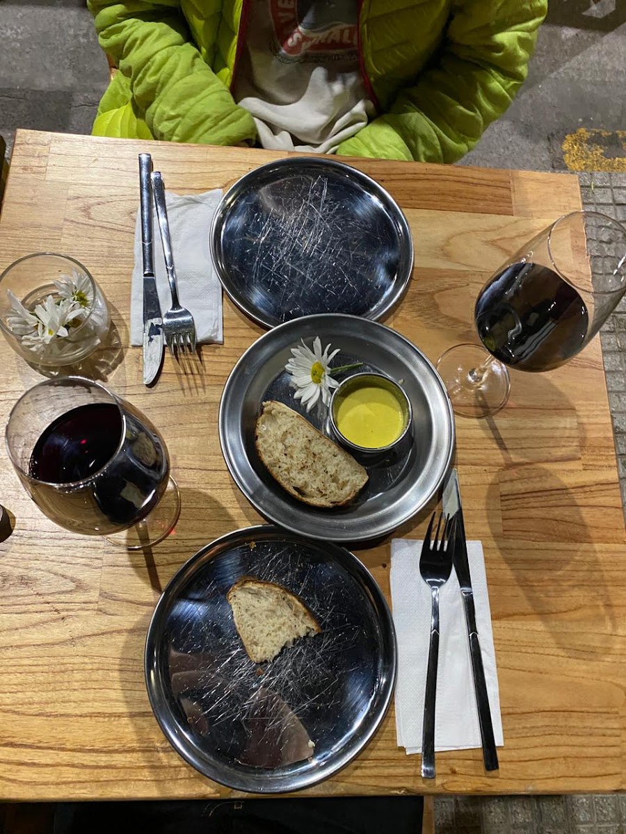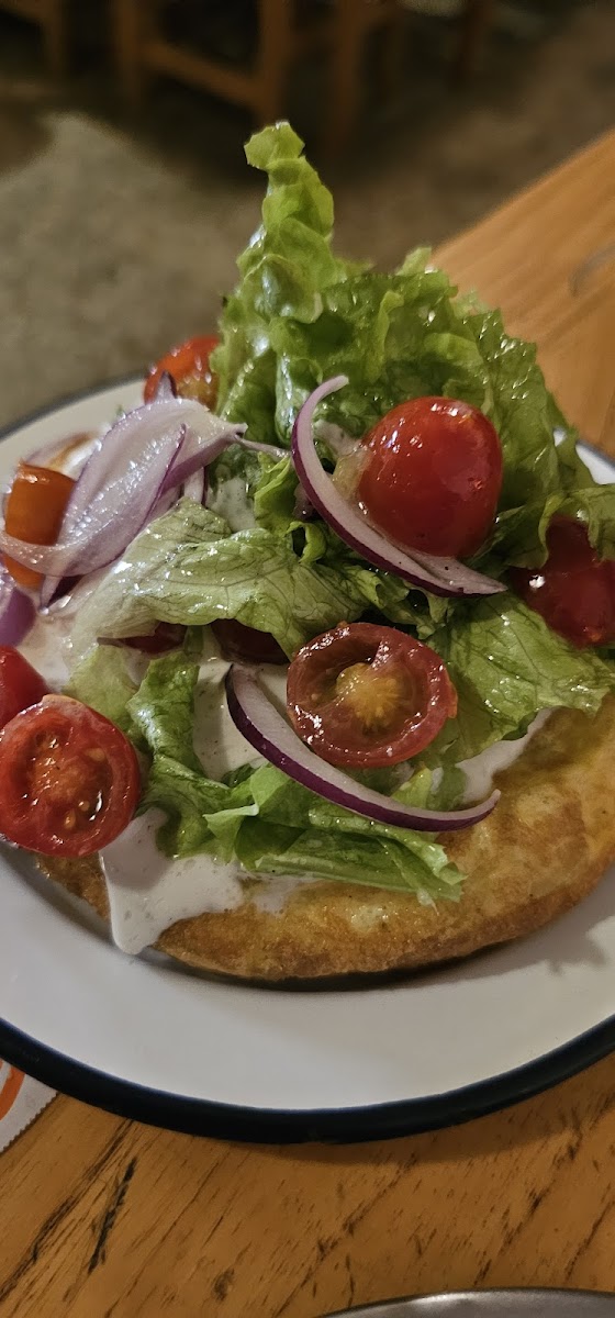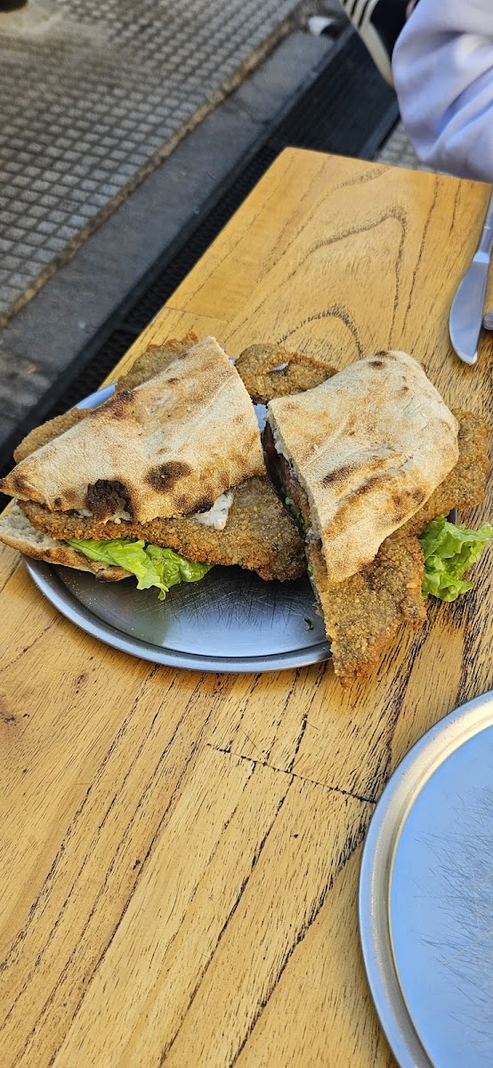 El sanguche de milanesa estaba demasiado bueno, porque el pan era de masa madre. Espectacular combinación, lo recomiendo. Volvería al lugar solo por ese sándwich. Las pizzas de masa madre muy ricas también. La tortilla de papas era muy chiquita para mi gusto, y las verduras arriba son innecesarias. Si comés adentro, está la cocina al lado tuyo y es toda una experiencia, aunque todos es risas y diversión hasta que alguien pide una pizza con cebolla y la comienzan a cortar, momento donde vos también llorás. El baño tenía un problema con el agua del grifo.