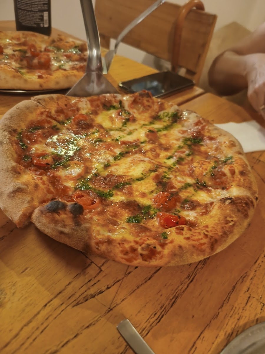 Lugar chico pero acogedor, perfecto para ir en pareja o un grupo chico de amigos. La comida vino rapido y antes de traerla te traen unos panes con una salsa para ir matando el hambre. La pizza es un espectaculo, la margarita es una mezcla de sabores, la masa es super suave y aireada, pero al mismo tiempo es crocante. Muy jugosa y a mi en particular me encanta el estilo napolitano, la mejor que probé hasta el momento. En comparacion a otros lados por el mismo tipo de pizza, es barata. La bebida tambien es muy accesible, tienen tanto tragos como gaseosas y agua. 10 puntos